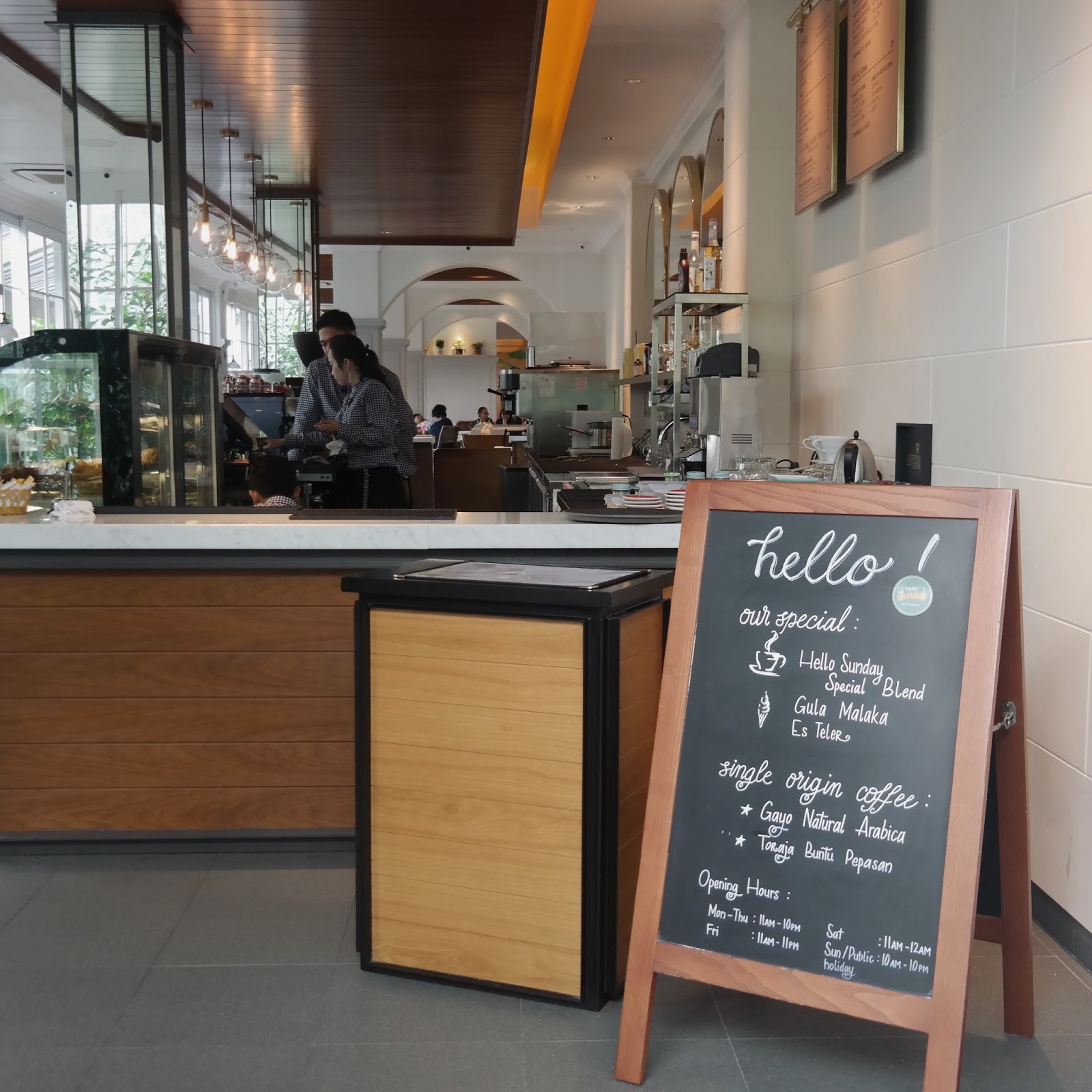 I always loved to be in a place with maximum lighting, meaning bright and shiny as it got direct access to the natural light, not merely to get good pictures, but more importantly it was able to boost my spirit up and cast away my sleepiness. I knew I probably would rarely be able to find coffee shop by the main road with cozy ambiance in this metropolitan city, but at least the type similar to Hello Sunday could come as the compensation.